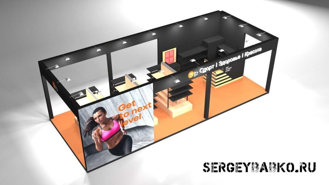 Визуализация островного магазина 5lb на спортивном фестивале для согласования застройки и утверждения c выставочной площадкой (Москва)