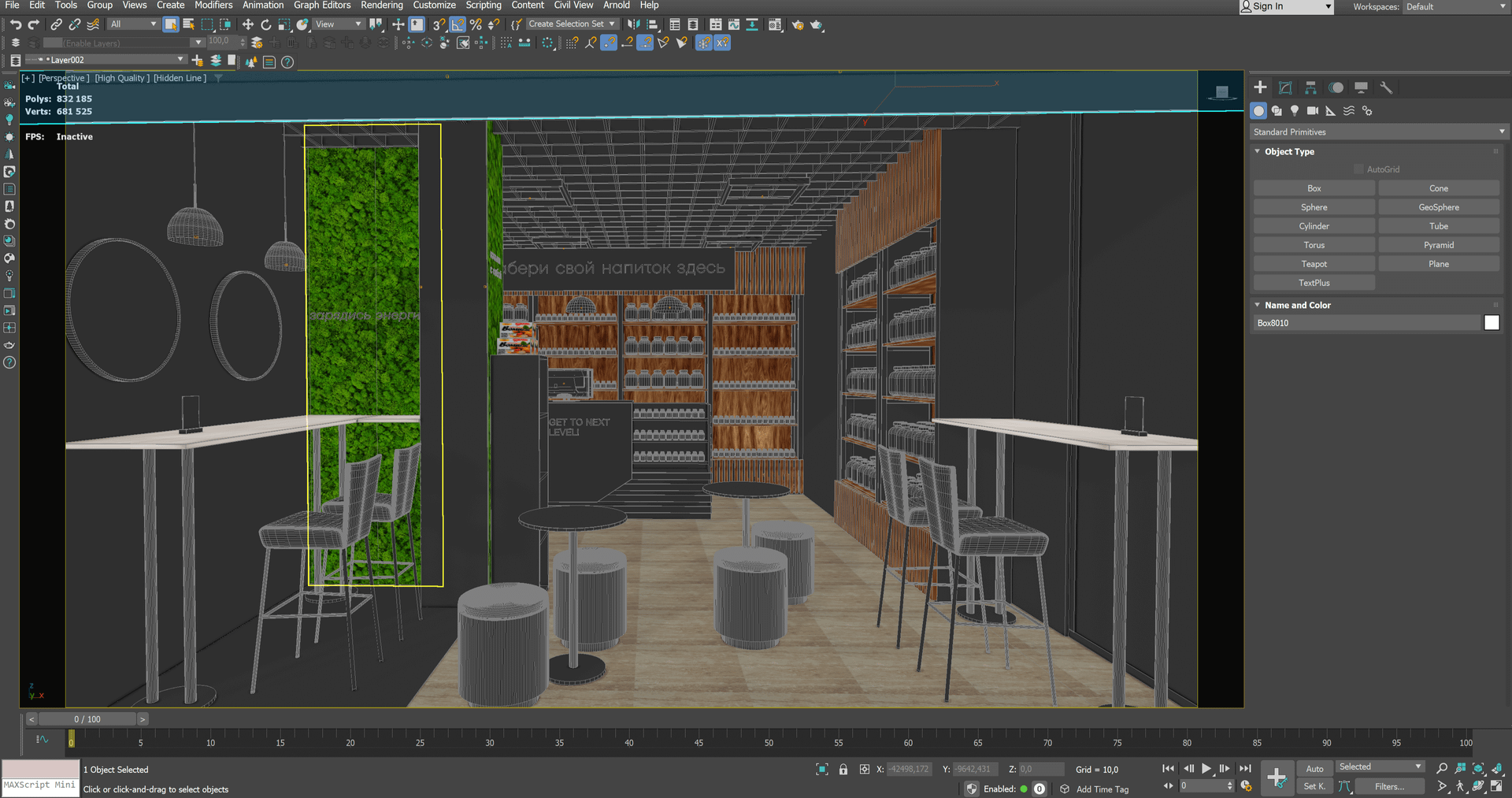 - Приступаю к моделированию архитектурных элементов (помещение, потолок, перегородки, стойки, прилавки)