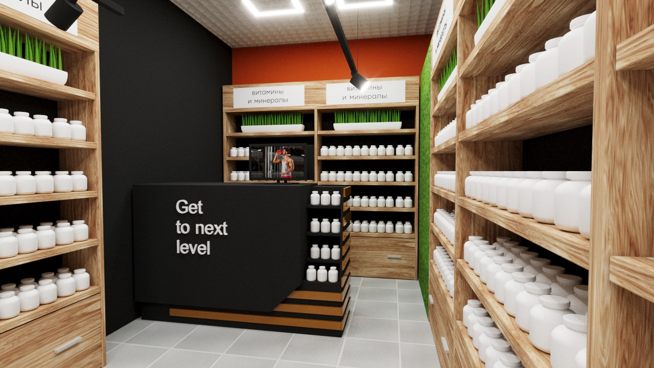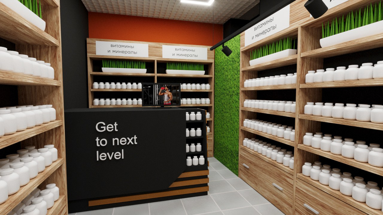 Визуализация магазина спортивного питания для согласования с торговым центром (Москва).