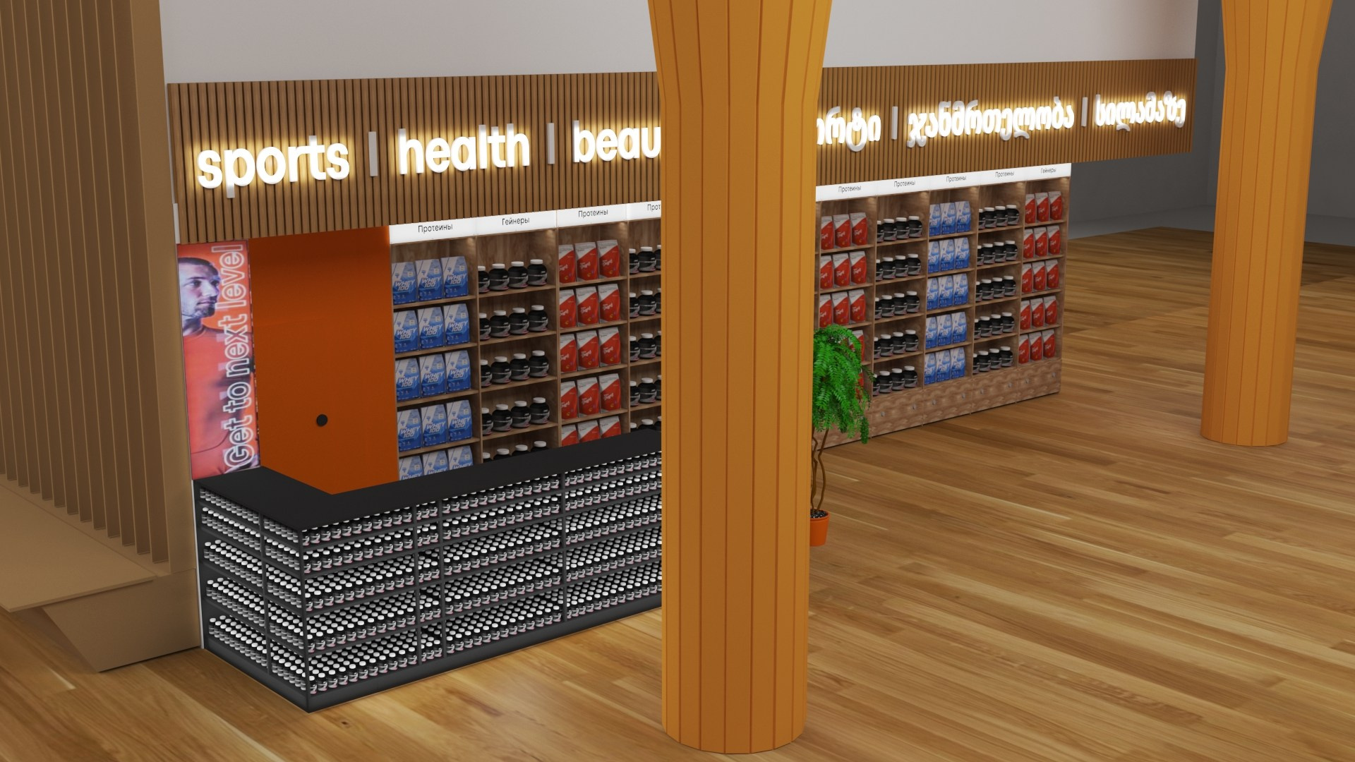 Визуализация магазина спортивного питания для согласования с торговым центром (Грузия).