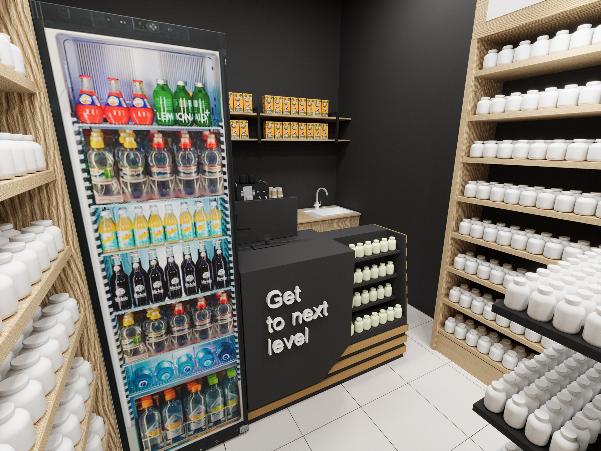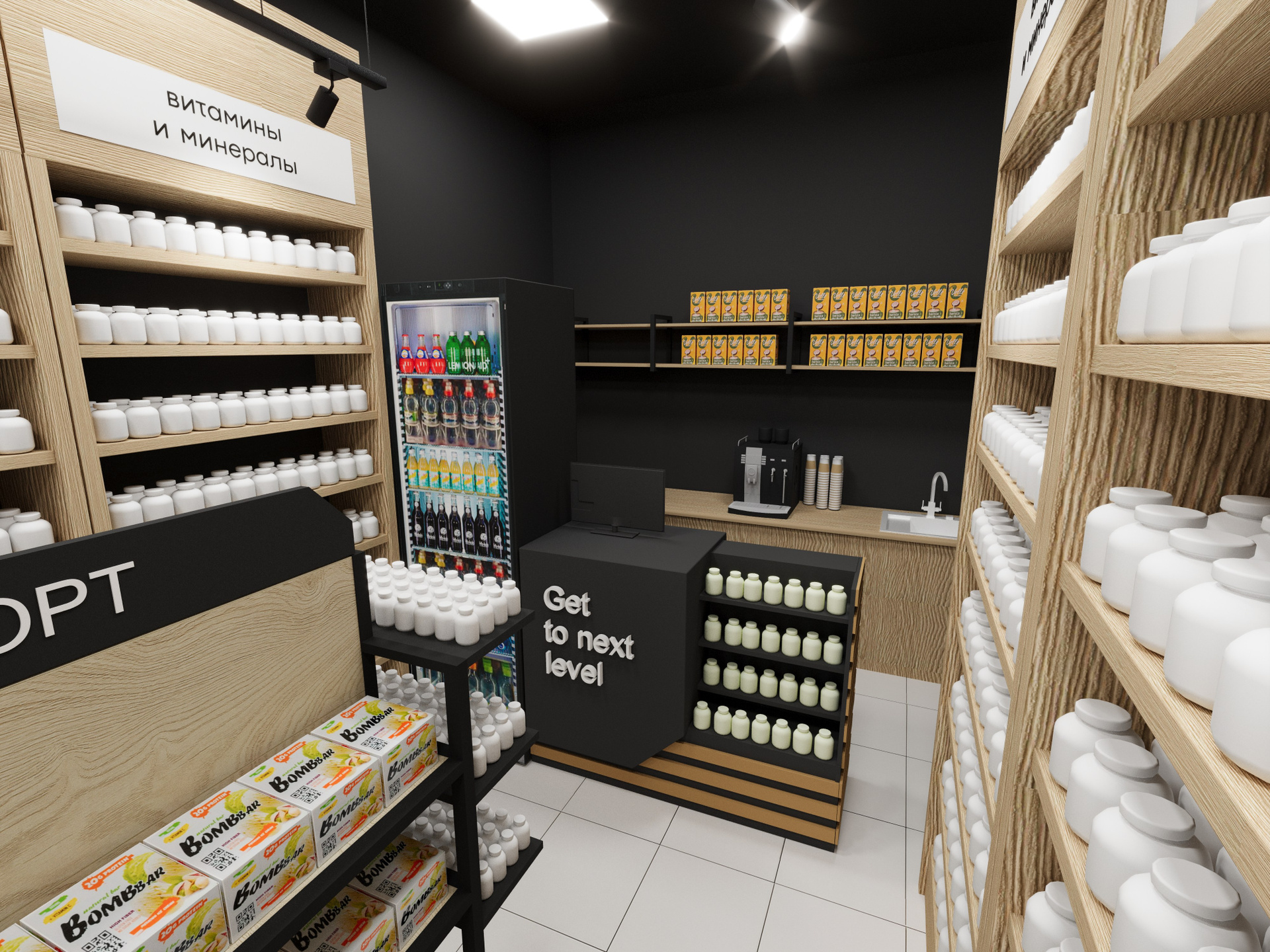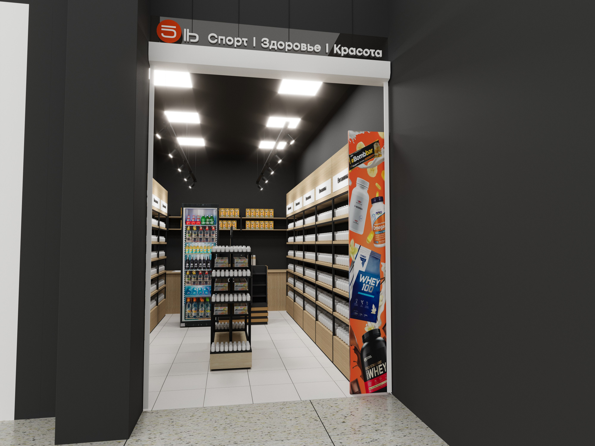 Визуализация одного из магазинов сети спортивного питания “5lb”. Точка расположена в Красноярске. Визуализация делалась для согласования с торговым центром.