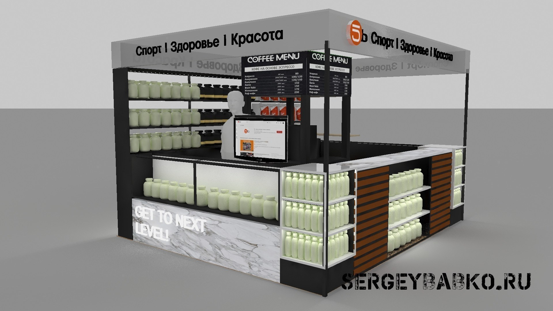 Визуализация островных магазинов 5lb для согласования застройки и утверждения c выставочной площадкой и в Торговом центре (Москва)