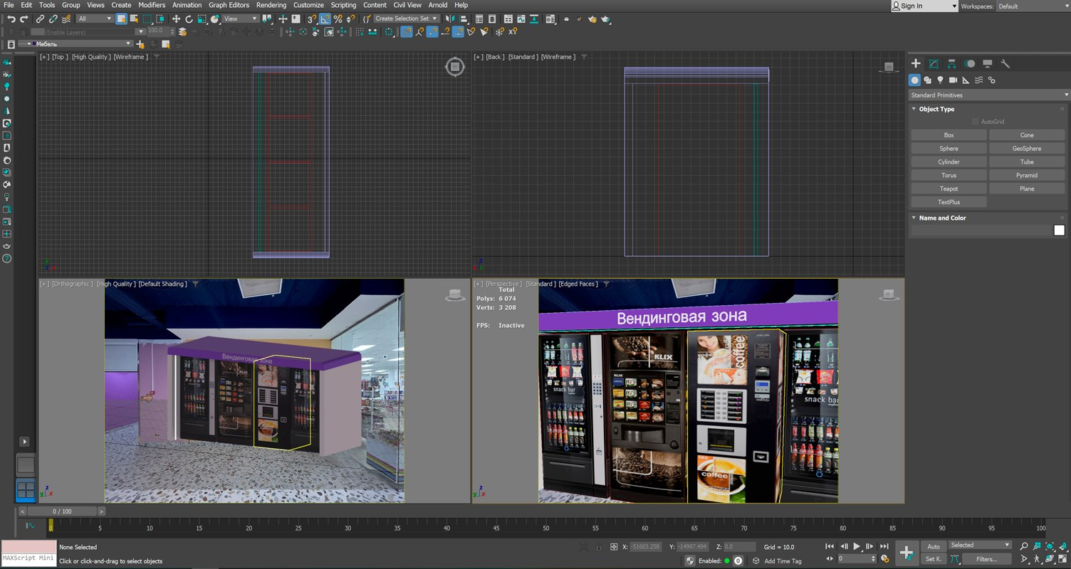 Визуализация зоны вендинговых аппаратов. Визуализация делалась для согласования с торговым центром в Москве.